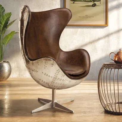 Fotel Egg Design - Aviator Style - Tapicerowany w Leatherette - Eny