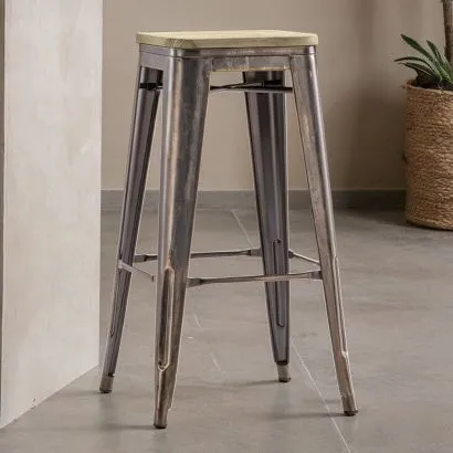 Stołek barowy - Wzornictwo przemysłowe - Drewno & metal - 76cm - Stylix