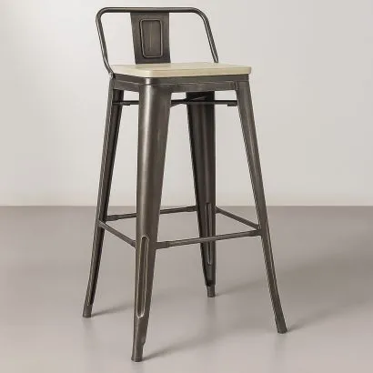 Stołek barowy z oparciem - Wzornictwo przemysłowe - Drewno & stal - 76cm - Stylix