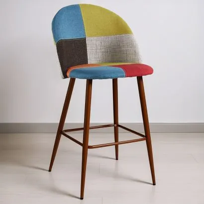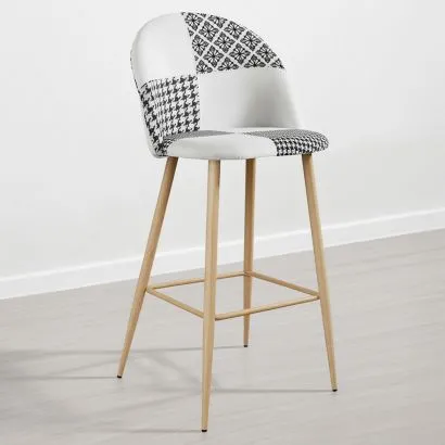 Patchworkowy stołek tapicerowany - Styl skandynawski - Ray