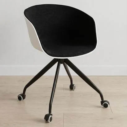 Tapicerowane krzesło biurowe z podłokietnikami - czarno-białe krzesło do biurka - Jodie