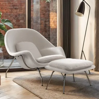Designerski fotel z podnóżkiem - tapicerowany tkaniną - Womb