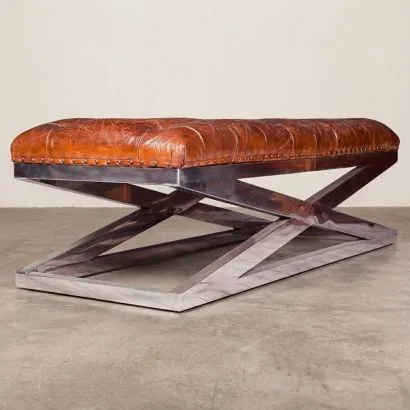 Designerska ławka - 2 miejsca - tapicerowana skórą - Konel