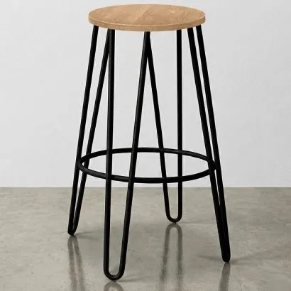Round Bar Stool - Industrial Design - Wood & Steel - 43cm - ...