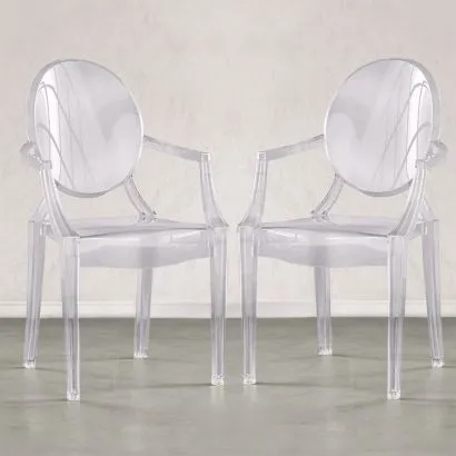 Zestaw 2 przezroczystych krzeseł do jadalni - Design z podłokietnikami - Louis XIV
