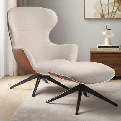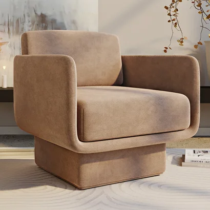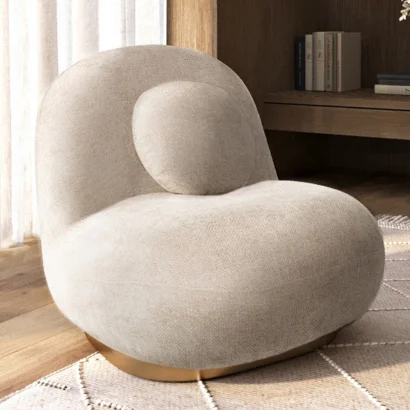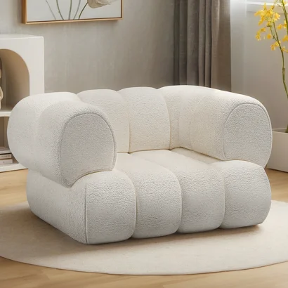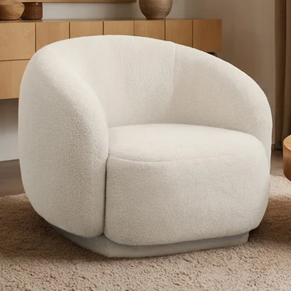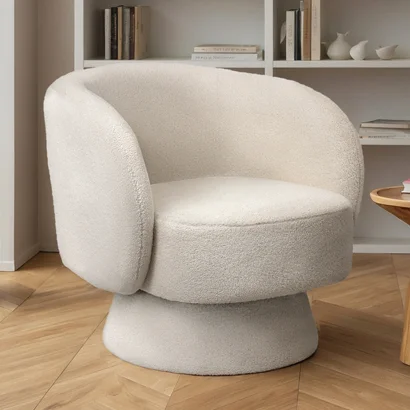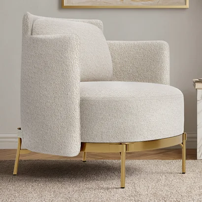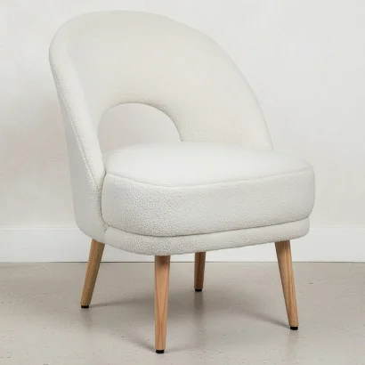 Tapicerowany Fotel w Materiał Bouclé - Krzywy Design - Drisela