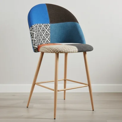 Patchworkowy taboret tapicerowany - styl skandynawski - 66cm - Evelyne