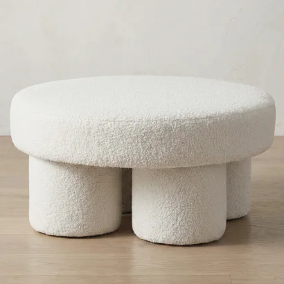 Okrągły Puf Tapicerowany w Materiał Bouclé - Posera