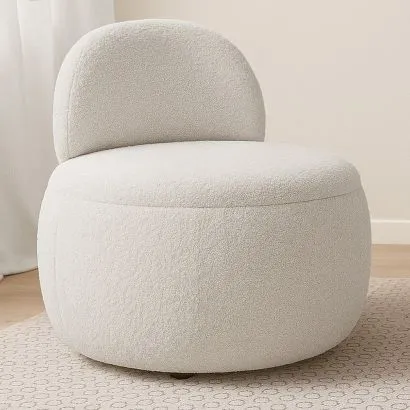 Puf Luksusowa Podnóżek Domowy - Biała Boucle - Luxe