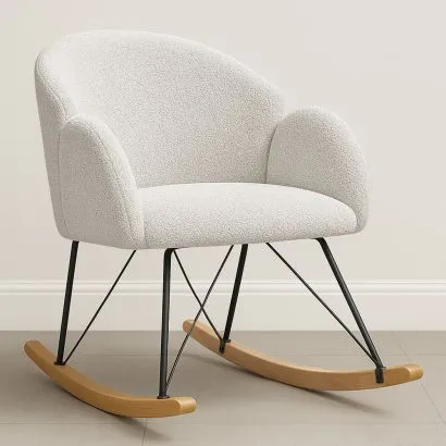 Fotel bujany z podłokietnikami - tapicerowany tkaniną bouclé...